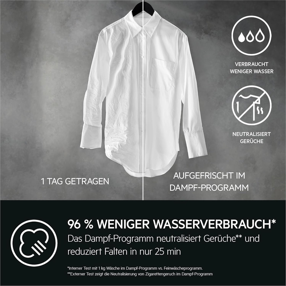- Dampffunktion: Auffrischen, glätten und desinfizieren Sie Ihre Kleidung ganz einfach mit Dampf.