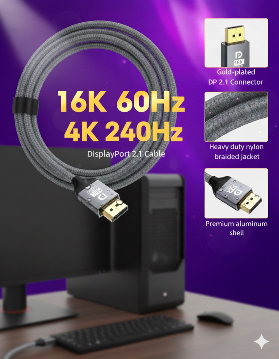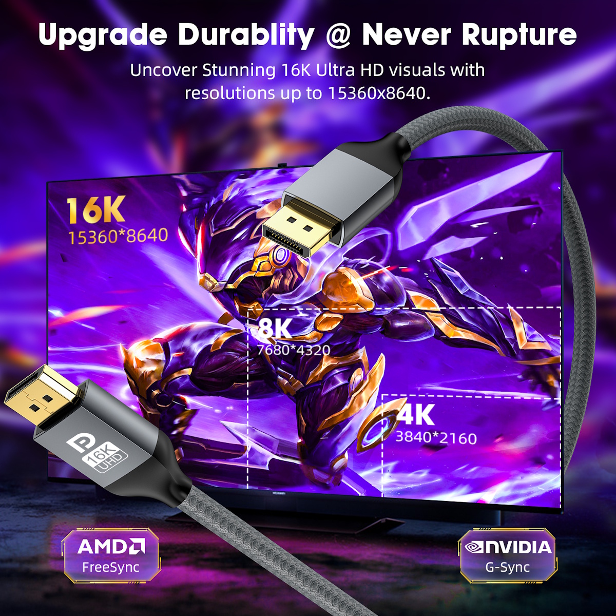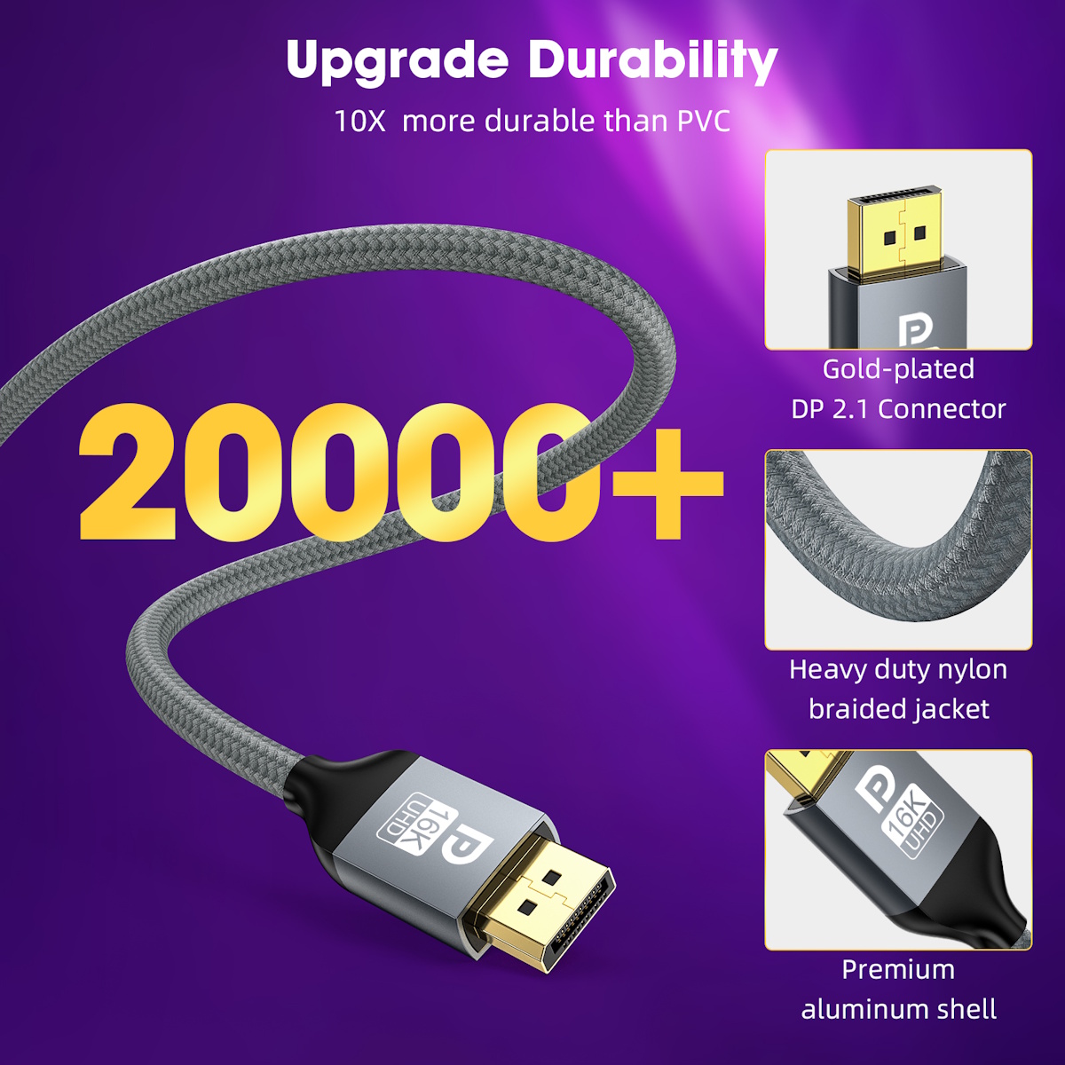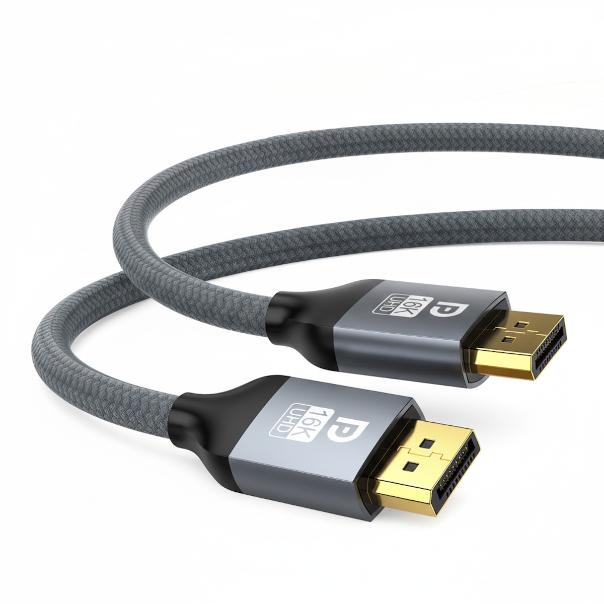 Displayport-Kabel 2.1, DP 1.4 Stecker / DP 1.4 Stecker, 16K 60Hz / 4K 240Hz UHD, grau