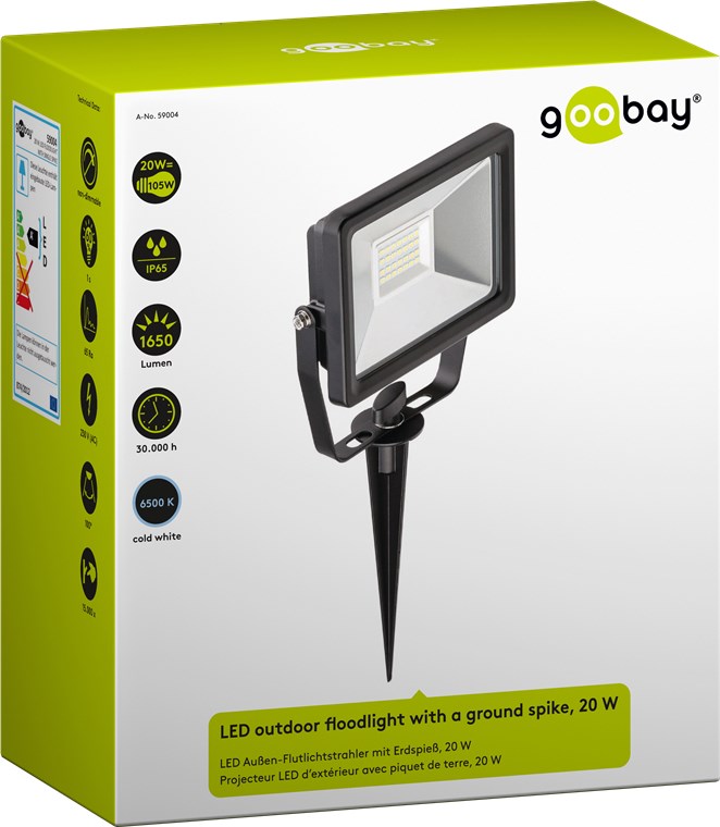 Goobay 59004, LED Außen-Flutlichtstrahler mit Erdspieß, 20 W