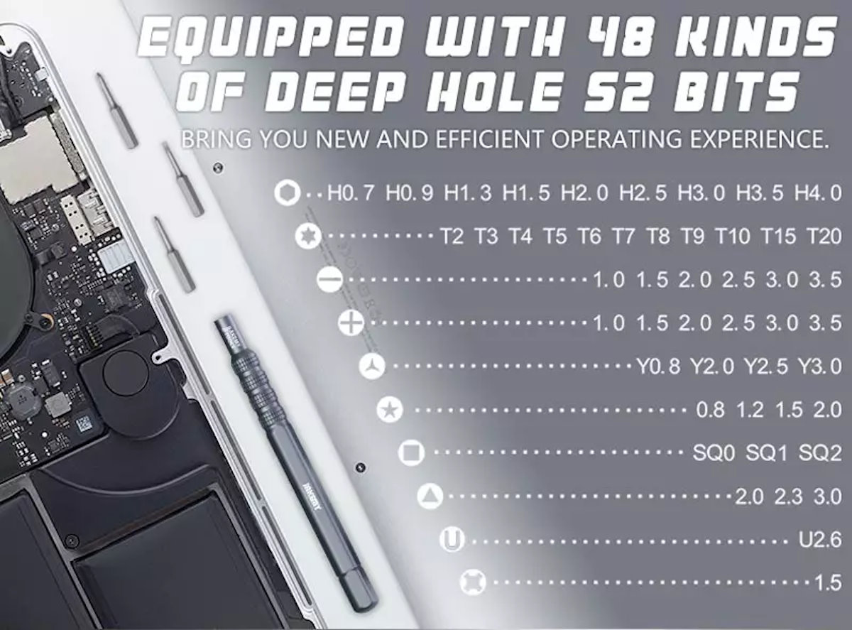| Torx | T2 / T3 / T4 / T5 / T6 / T7 / T8 / T9 / T10 / T15 / T20 |