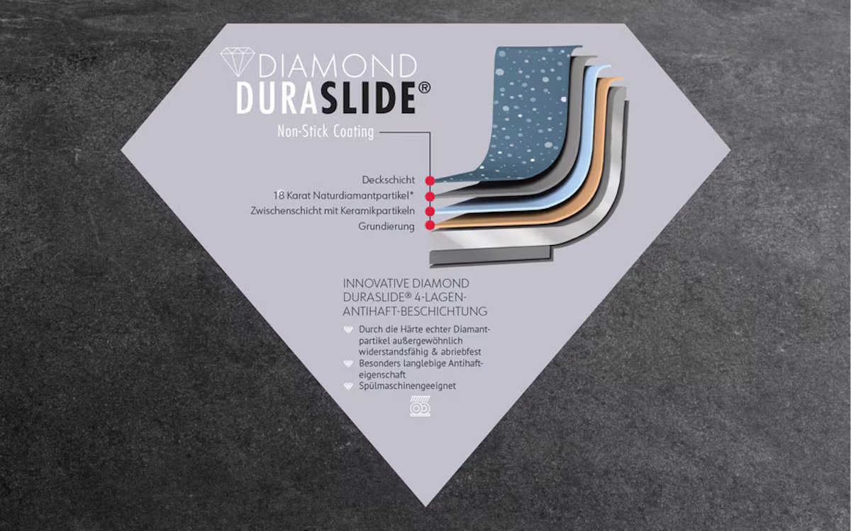 - Beschichtung: 4-lagige Duraslide Diamond Antihaftbeschichtung