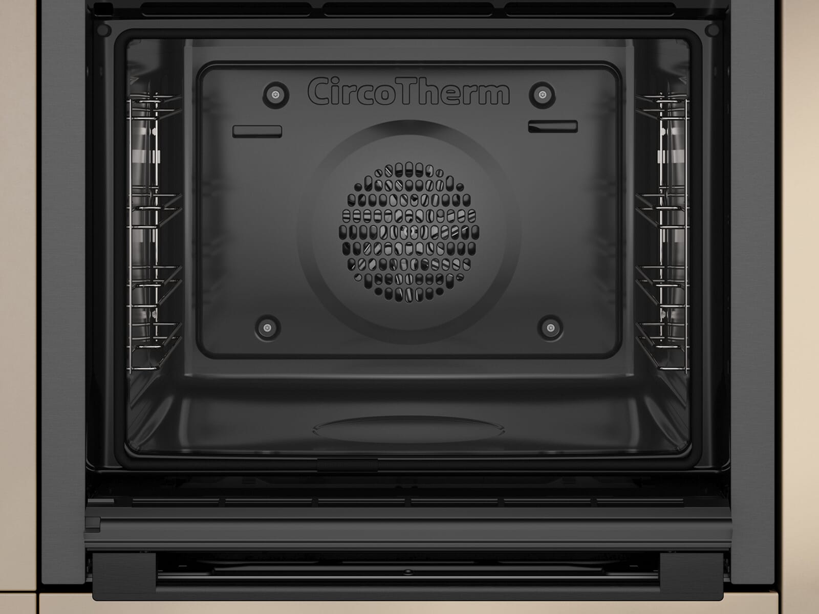 CircoTherm® ist ein einzigartiges Heißluftsystem, bei dem ein leistungsstarkes Gebläse die Hitze schnell und gleichmäßig im gesamten Backofen verteilt. Im Gegensatz zu traditioneller Heißluft ermöglicht CircoTherm® das gleichzeitige Garen auf bis zu vier Ebenen, ohne dass sich Aromen vermischen. Das spart Zeit und garantiert gleichmäßige Back- und Bratergebnisse.