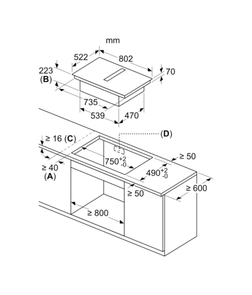 | Nischenmaß (B x H x T) | 750 x 223 x 490 mm |