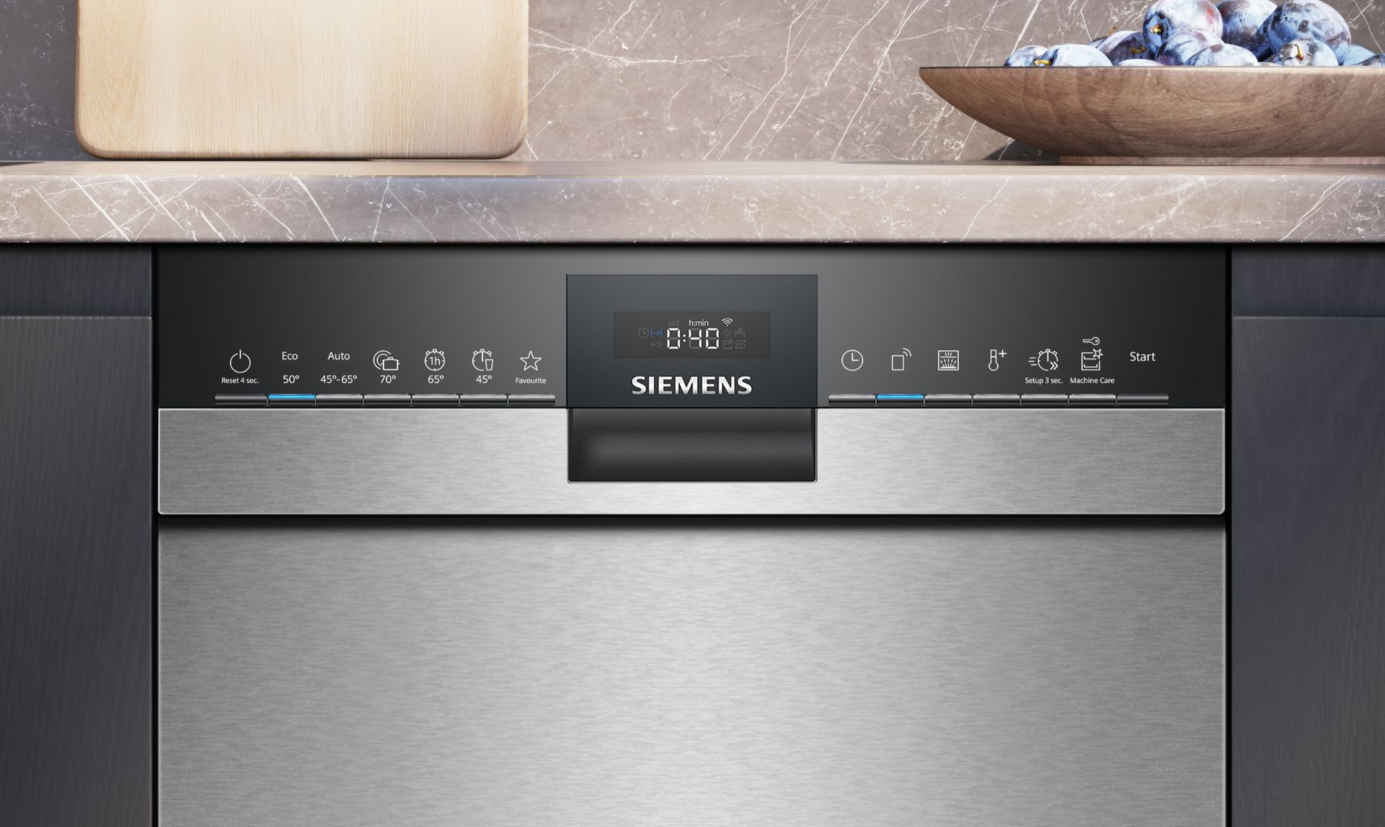 Produkt Highlight varioSpeed Plus – Geschirr bis zu drei Mal schneller spülen und trocknen. Home Connect-App – Steuern Sie Ihren smarten Geschirrspüler von überall aus. Die Favoriten-Taste – Ihre Lieblingsprogramme auf Knopfdruck. Wählen und starten Sie Ihr Spülprogramm bequem über die Home Connect App - Fernsteuerung. Behalten Sie Ihren Geschirrspüler stets im Blick - Remote Monitoring. Entdecken Sie den SIEMENS iQ300 Teilintegrierten Geschirrspüler mit einer Breite von 45 cm und einem eleganten Edelstahl-Design. Der SR53ES24KE bietet eine effiziente und gründliche Reinigung für Ihr Geschirr dank seiner innovativen Technologie. Mit verschiedenen Programmen und Funktionen wie VarioSpeed und AquaStop ist dieser Geschirrspüler nicht nur leistungsstark, sondern auch benutzerfreundlich. Dank seiner Teilintegration fügt er sich nahtlos in Ihre Küche ein und sorgt gleichzeitig für strahlend sauberes Geschirr bei jedem Einsatz. Die schnelle und clevere Reinigung. Spülen und trocknen Sie das Geschirr bis zu drei Mal schneller, aber mit demselben exzellenten Ergebnis. Mit varioSpeed Plus können Sie außerdem jederzeit den Spülturbo einschalten, auch wenn der Spülgang bereits läuft. Und das Beste: Sie können varioSpeed Plus über die Home Connect-App auf Ihrem Gerät aktivieren und steuern. Ist das nicht smart? Die ultimative Reinheit. Die hygienePlus-Funktion ist ideal, wenn Sie strengste Hygienestandards einhalten müssen. Beim letzten Spülgang wird die Temperatur für ca. 10 Minuten auf einer konstanten Temperatur von bis zu 70 °C gehalten. Dadurch werden bis zu 99,99 % aller Bakterien und Keime abgetötet. Effizient, langlebig und leise - iQdrive-Motor. Weniger Energieverbrauch bei gleicher Leistung, kurze Programmzeiten mit optimalen Ergebnissen und in allen Programmen immer angenehm leise – diese Vorteile bietet der iQdrive-Motor. Und bei all diesen Vorteilen läuft er noch nahezu verschleißfrei. Für glänzende Ergebnisse bei jedem Spülgang: Der Siemens iQ300 ist unverzichtbar!
