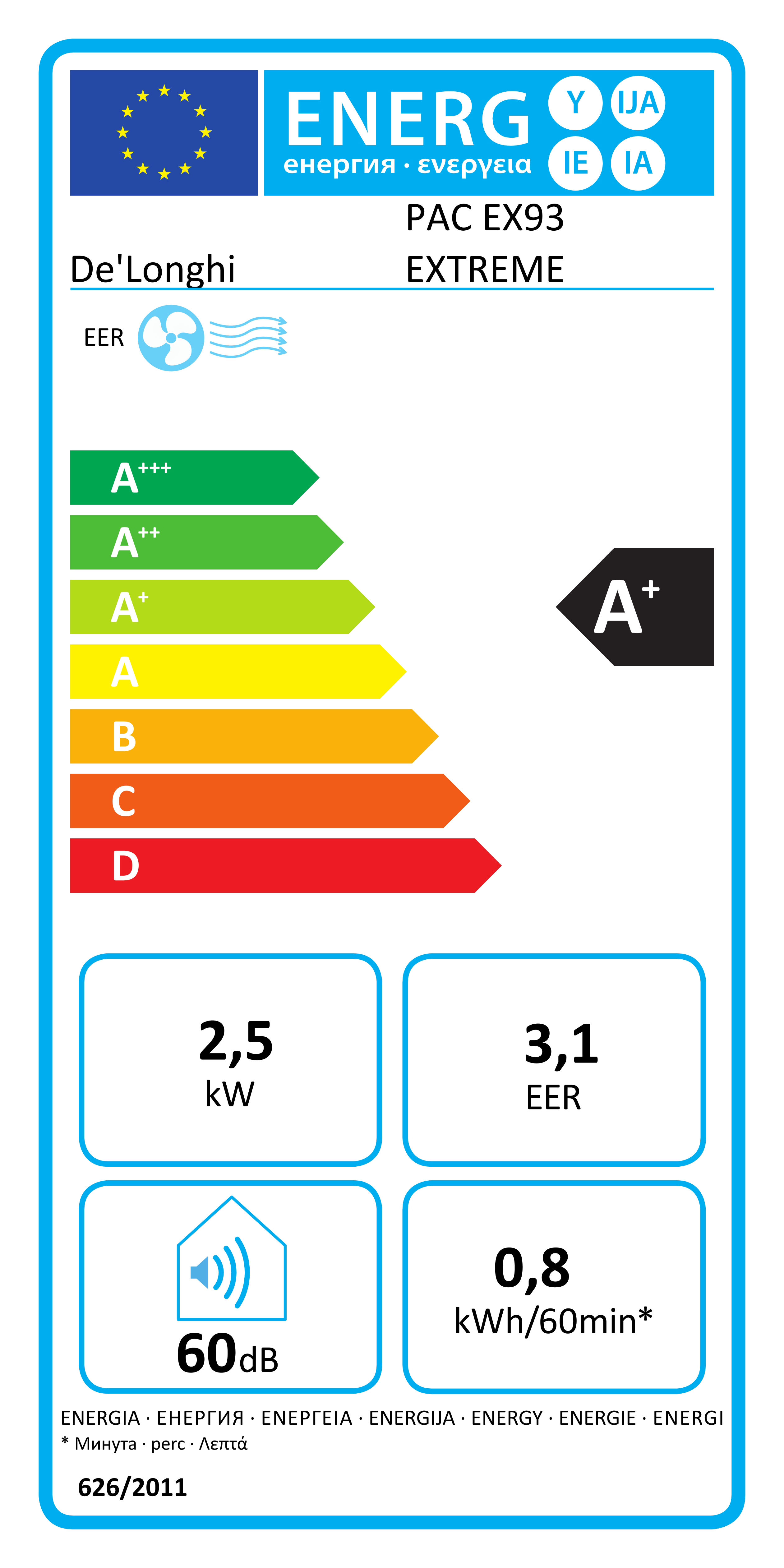 Technical Specifications – De'Longhi PACEX93EXTREME Pinguino Extreme Portable Air Conditioner